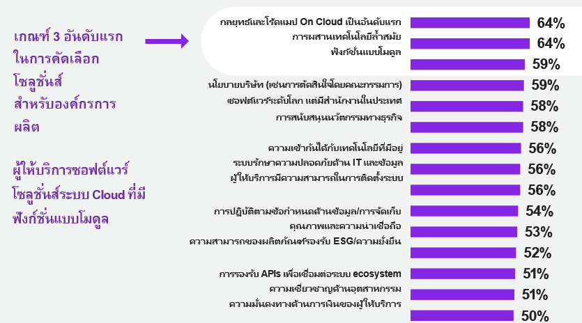 จากเกณฑ์ 3 อันดับแรกที่บริษัทผู้ผลิตให้ความสำคัญในการคัดเลือกโซลูชัน นั่นก็คือระบบ On Cloudการมีเทคโนโลยีที่ล้ำสมัยและนำเสนอฟังก์ชันแบบโมดูล ซึ่ง IFS นั้นตอบโจทย์เกณฑ์เหล่านี้ได้อย่างเหมาะสม