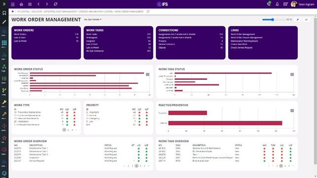 IFS Lobby in the IFS EAM solution offers numerous features for data analysis, configurable by role—such as Maintenance Manager and Technician—with each role requiring access to different information. Users in each role can retrieve critical data for display in the Lobby, such as: machinery operating time, pending maintenance work, and progress of assigned maintenance tasks. IFS Lobby users can track maintenance work through status monitoring, progress tracking, and personnel identification to facilitate faster performance evaluation.