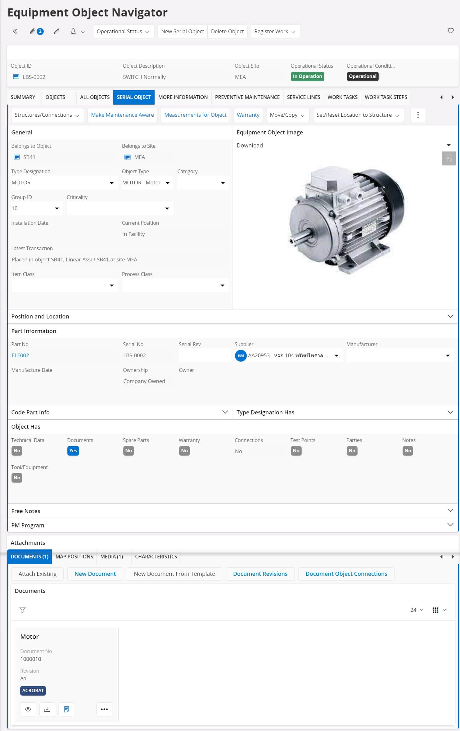 Additionally, the IFS Equipment function manages equipment across various dimensions, such as categorizing or grouping equipment for easier management and identifying technical specifications—including Test Points and various measurement data—while maintaining maintenance history and equipment warranty records. The system also supports attaching related documentation in various formats, including video clips, PDF documents, maintenance procedures, and equipment assembly/disassembly instructions.