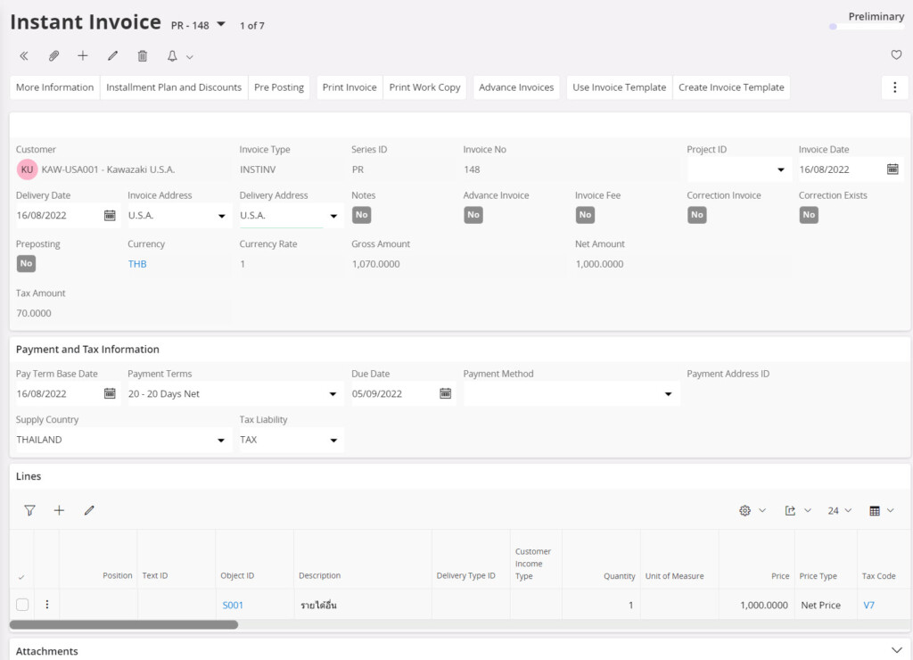 หน้า Instant Invoice ที่เปิดจากระบบ IFS Financials โดยตรง
