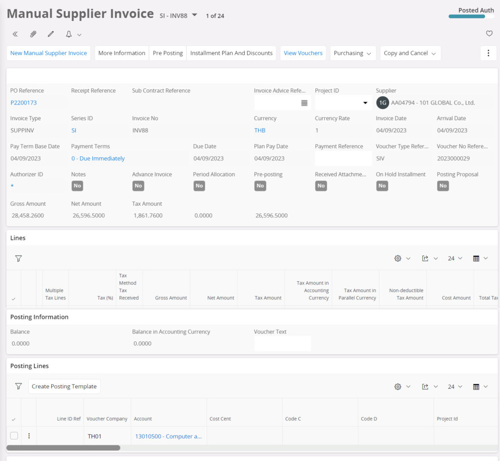 Manual Supplier Invoice หน้าลงทะเบียน Supplier Invoice