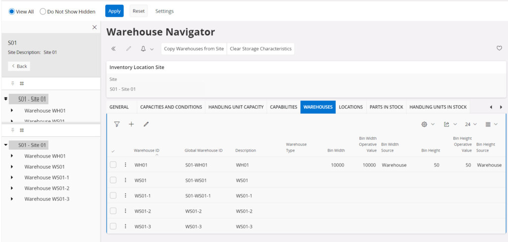 นอกจากนี้ ระบบสินค้าคงคลัง ยังมีฟังก์ชันที่ทำให้เจ้าหน้าที่สามารถเห็นสภาพ (Capacity) ของคลังสินค้าแต่ละแห่งโดยผ่าน Warehouse Navigator โดยพนักงานจะทราบถึงขนาด (Sizing) ของคลังสินค้าและเงื่อนไขพิเศษ อย่างเช่นอุณหภูมิของคลังสินค้า รวมถึงรายการสินค้าที่อยู่ในคลังสินค้านั้น โดยเจ้าหน้าที่สามารถทำฟังก์ชันกับสินค้า อย่างเช่น การเคลื่อนย้ายไปยังคลังสินค้าอื่น, การทิ้ง (scrap) หรือการตรวจดูรายละเอียดการจองของสินค้านั้น