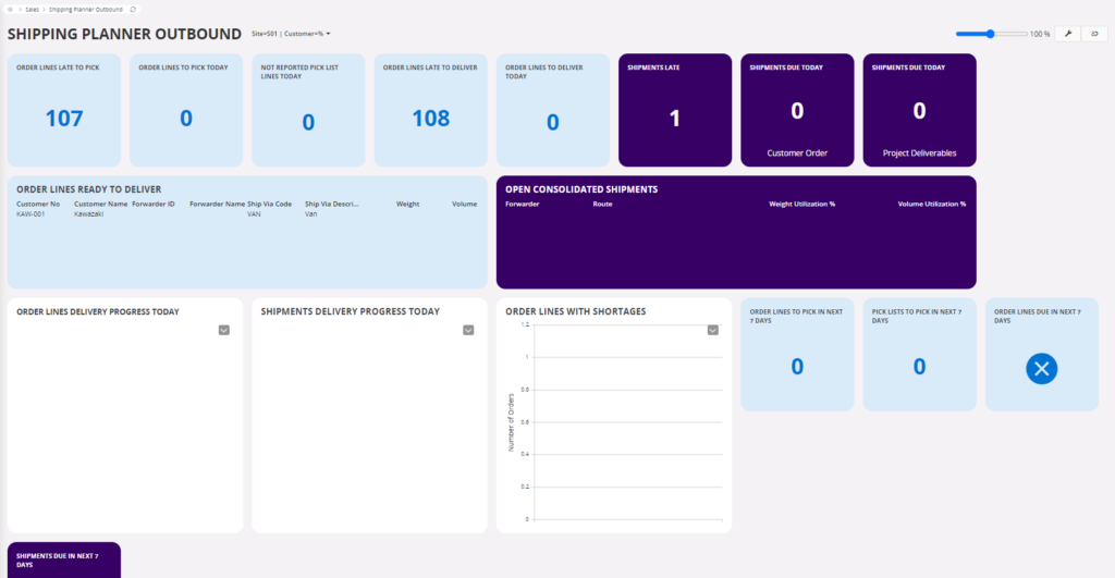 Lobby สำหรับดู Performance การส่งของให้ลูกค้า แสดงรายละเอียดทั้งในส่วนของ Customer Order และ Shipment