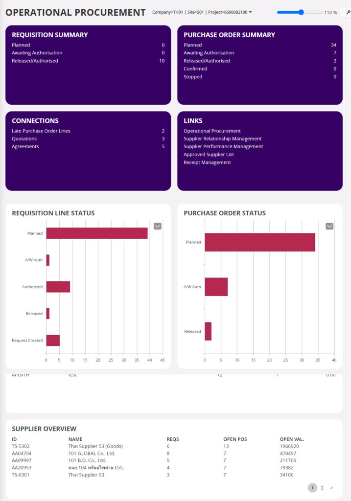 Operational Procurement ซึ่งจะแสดงสถานะของใบคำขอจัดซื้อ ใบจัดซื้อ ทำให้ผู้ใช้งานสามารถเห็น