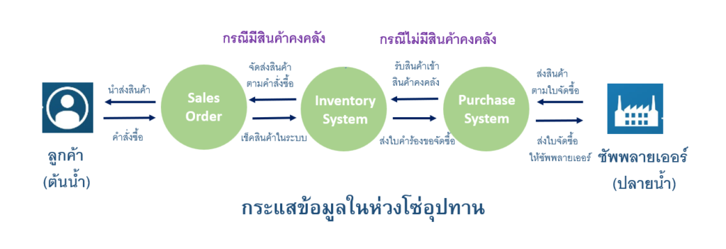 การจัดการห่วงโซ่อุปทาน (Supply Chain) ถือได้ว่าเป็นหัวใจหนึ่งในการลดต้นทุนขององค์กร โดย Supply Chain จะดูแลกระบวนการขับเคลื่อนของสินค้าและบริการ ตั้งแต่ต้นน้ำคือ การจัดการใบสั่งขาย (Sales Order) จากลูกค้า ทำการจองสินค้าที่มีอยู่ในคลังสินค้า (Warehouse) ไปจนถึงปลายน้ำ คือ การจัดหาสินค้าหรือวัตถุดิบจากซัพพลายเออร์ โดยใช้ระบบการจัดซื้อ (Purchasing) เพื่อนำส่งเข้าสู่กระบวนการผลิต หรือนำสินค้าเข้าคลังสินค้า เพื่อจัดส่งสินค้าให้กับลูกค้าตามใบสั่งขาย