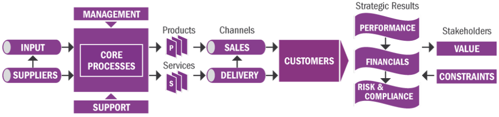 All the key aspects and interdependencies required to manage your business are captured in the BizMap™. Populating the BizMap ensures that all areas of your organization – strategic, tactical and operational – are linked through a single platform, providing a direct link between strategic goals, results and operational execution. This increases business agility to respond to changing conditions and provides the visibility, intelligence and actionable controls needed for operational intelligence across an enterprise.