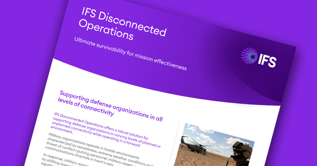 IFS Disconnected Operations offers a robust solution for supporting defense organizations in varying levels of planned or unplanned connectivity while operating in a forward environment.